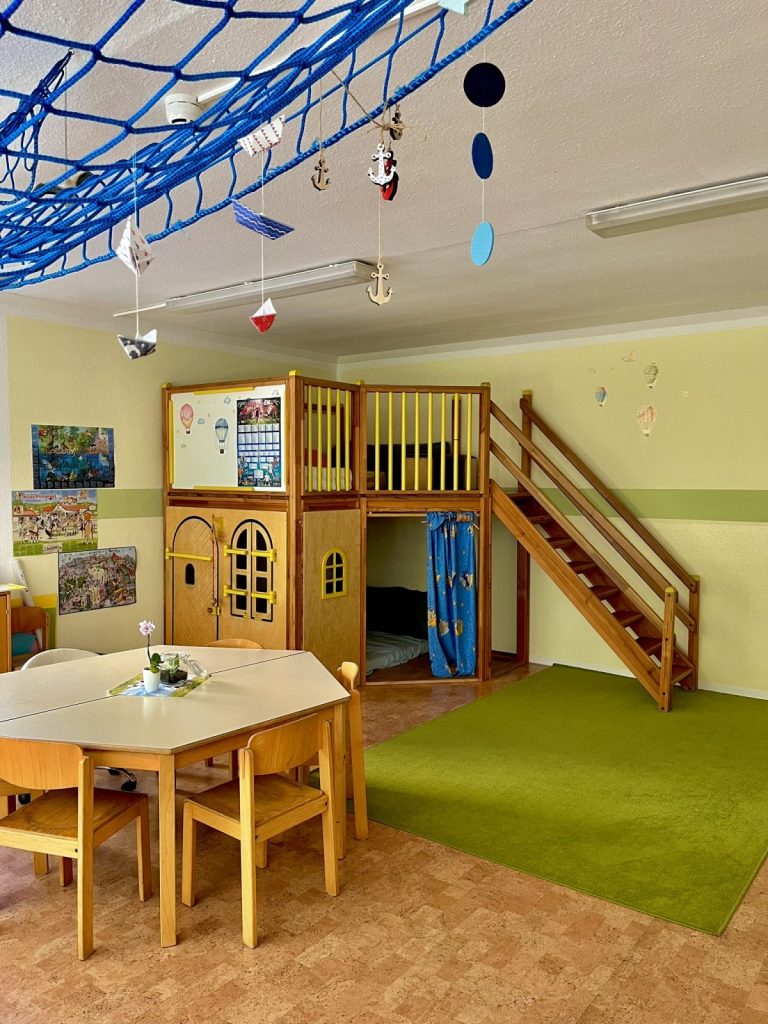 12 Gruppenräume, 4 separate Schlafräume, großer Turnraum, Kinderküche, Kinderwerkstatt, Phantasie- und Snoezelraum, Bällebad und Spielburgen Kreativraum, Bau-und Konstruktionsraum, die hauseigene Sauna
